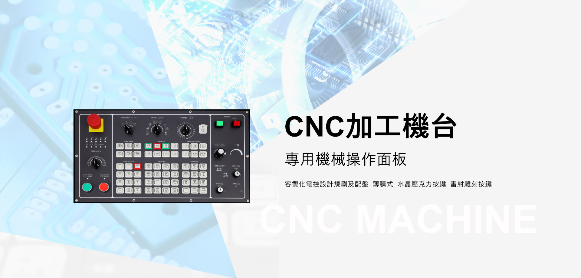 自1989年成立以來,宇聯電子有限公司主要產品為客製化的CNC操作面板、電路板、手動脈波產生器、外置式手持盒單元、電控設計規劃及配盤等,同時也提供模組化的繼電器板和連接板供客戶選擇。我們提供各式電控配套產品,適用於三菱、發那科、西門子、海德漢、發格及產業型自動化設備等。宇聯電子擁有數十年的工業產品研發及自動化控制系統設計經驗,為工具機及製造業客戶提供優質的產品。此外,我們持續不斷研發技術,許多創新設計榮獲專利及IP67、CE、RoHS國際認證。宇聯產品採取少量多樣、模組量產的模式,可根據客戶需求進行訂製,透過與客戶間密切合作,打造專屬工業環境使用的優質產品。